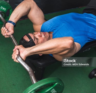 Starting Position: Lie on a bench or the floor, holding a barbell or dumbbell. Extend your arms directly above you, ensuring a tight grip.